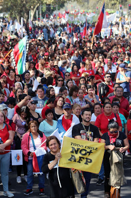 Vestindo camisetas com o rosto do ex-presidente Salvador Allende e do cantor Victor Jara, empunhando o azul e vermelho da bandeira nacional mesclado com o vermelho da Central Unitária dos Trabalhadores (CUT) e o amarelo vibrante do movimento No+AFP (Chega de AFP), o povo animou e coloriu as ruas de Santiago, Valparaíso, Concepción, La Serena, Antofagasta e dezenas de outras cidades, fazendo ecoar o chamado do “Basta!”.