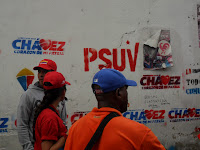 Na fila do gargarejo, incansáveis cidadãos me disseram que haviam chegado antes das oito horas da manhã.  Eram duas da tarde e quando a chuva caiu torrencialmente, Hugo Chavez ainda não havia chegado e aquela imensa massa humana não arredou pé. E cantavam as músicas da campanha, e entoavam palavras de ordem tradicionais como o “povo unido jamais será vencido”, e declaravam seu amor ao presidente Chavez.  Entrevistei algumas mulheres que declararam amar Chavez, quando lhes perguntei por que votavam nele. Outras aprofundavam um pouco, falando da saúde, da moradia, de algo que o presidente teria feito por elas ou por seus filhos. As ruas próximas ao comício, e por onde passamos,  todas centrais, ostentam prédios em construção do programa “Gran Mision Vivienda Venezuela. Isto é tão visível nesta cidade, o Estado oferecendo moradia digna a seus habitantes, quanto as anteriores ocupações desordenadas dos morros pelos pobres, tal qual em nosso país.