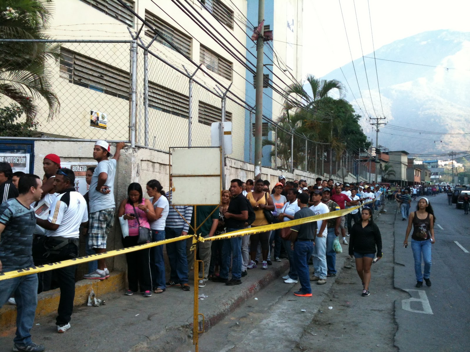 A reportagem saiu às 5 horas da manhã junto com os Patrulheiros Comunitários do Comando de Campanha Popular Hugo Chávez para percorrer o centro do município de Chacao e a comunidade Petare, no estado Miranda, ambas dentro da região metropolitana de Caracas. Na escola Andréz Bello, em Chacao, até às 6:10 da manhã as urnas ainda não estavam abertas, mas já haviam filas. Às 6:50, já na escola estadual Mirandina, em Petare, havia uma fila quilométrica e as pessoas já estavam votando.